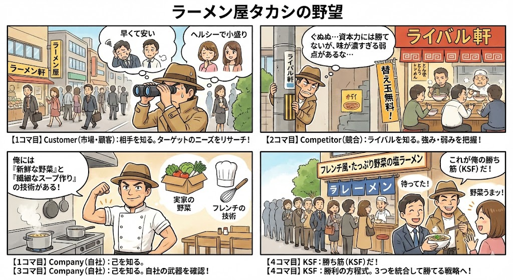 3C分析をラーメンやさんの事例で4コマ漫画を考えて