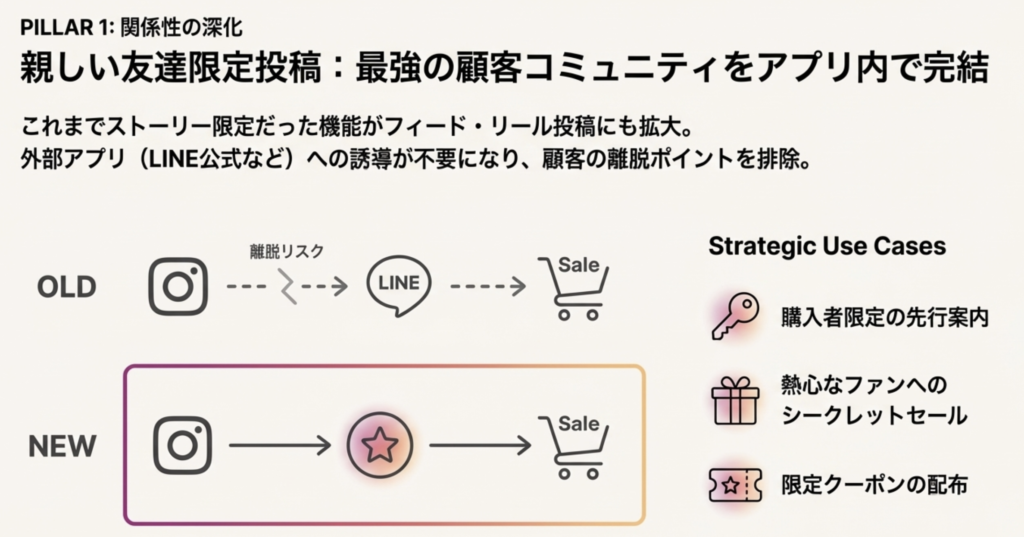 2. 親しい友達限定投稿:Instagram内での顧客囲い込み