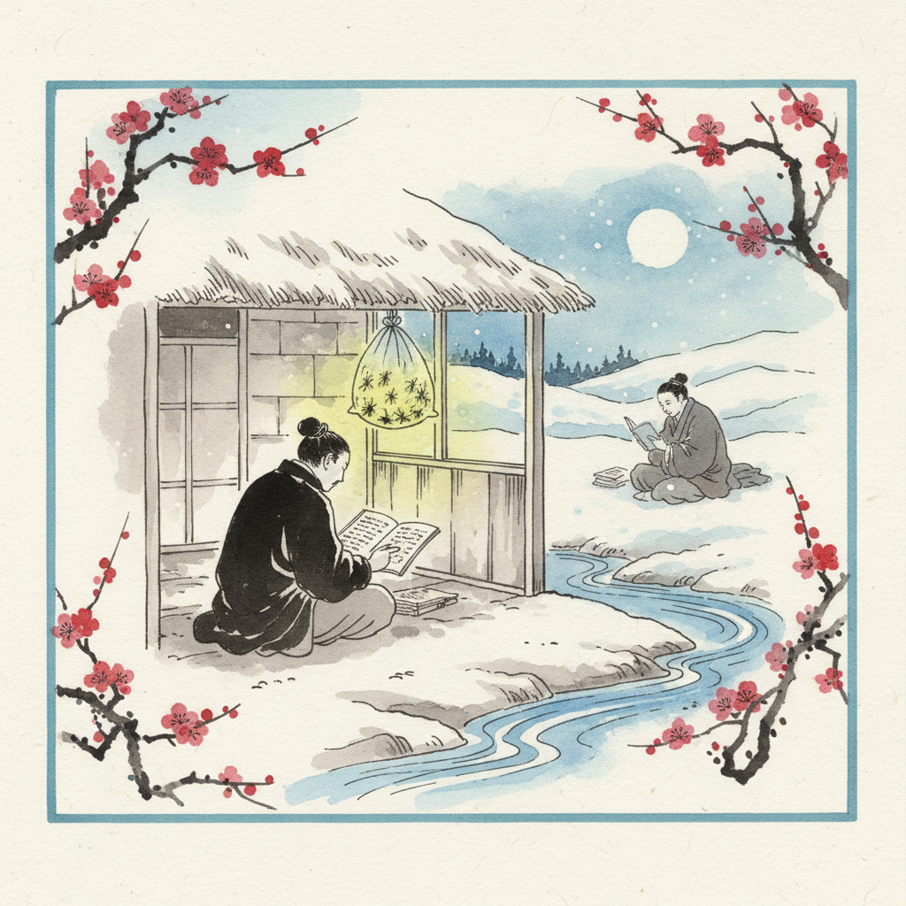 シンプルながら、二人の行動が鮮やかに目に浮かぶ表現です。この一節がそのまま後世に語り継がれ、「蛍雪の功」という四字熟語として定着していきました。